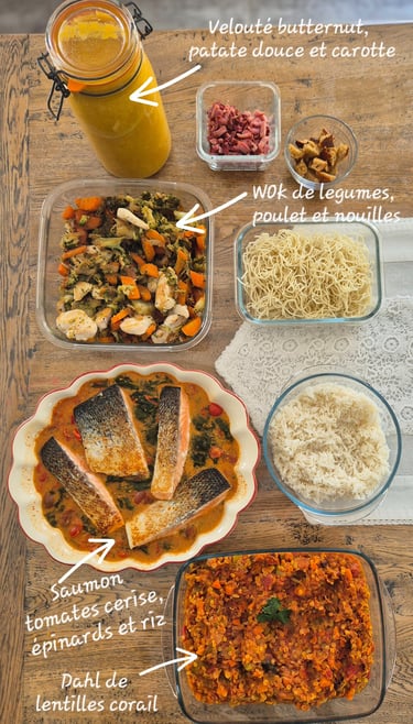Attachée à une alimentation saine, équilibrée et gourmande, j’ai naturellement pris l’habitude d’anticiper et de préparer mes repas à l’avance. Le batch cooking s’est alors imposé comme une solution idéale : simplifier l’organisation des repas tout en conservant plaisir, équilibre et diversité.